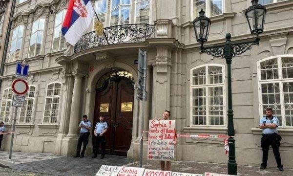 Aktivistë çekë sot kanë protestuar para Ambasadës së Serbisë në Pragë, duke e mbështetur Kosovën pas tensioneve në veri.
