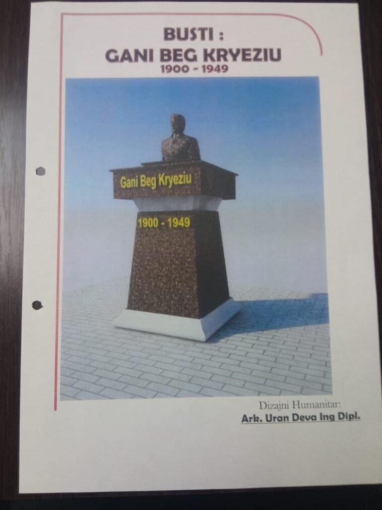 Këshilli financues i projektit-bustit të atdhetarit Gani Beg Kryeziut, të lejuar me Vendimin e Komunës së Gjakovës dhe të aprovuar me Vendimin e Institutit të Kosovës për Mbrojtjen e Monumenteve Nr.69/2023 dt.26.07.2023 i drejtohet Ministrisë së Kulturës, Rinisë dhe Sporteve për finansim të projektit.