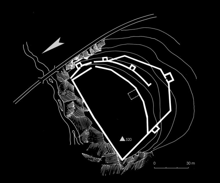 Faza së parë është identifikuar kryesisht përgjatë anës perëndimore e kodrës. Ajo përbehet nga trakte të murit dhe të dy kullave, të ndërtuara më dy këmisha anësore më gurë mesatar, të plotësuara në mes në teknikën çakëll më gurë të vegjël dhe llaç gëlqereje. Sipas gjetjes së qeramikës së zbukuruar më krehër datohet në antikitetin e vonë të shekujve IV – VI pas Krishtit.