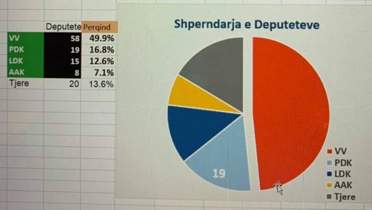 Matematikani Bleron Baraliu, pas numërimit final të votave, ka postuar në facebook një fotografi ku tregon se sa mandate ka marrë secila parti.