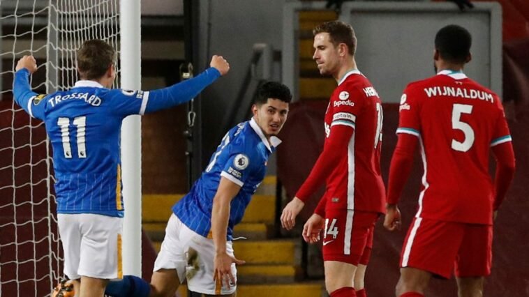 Që Liverpool nuk është ajo makineri perfekte e parë vitin e kaluar (sidomos para pandemisë) sigurisht që nuk është sekret: 3-1 i dyfishtë i shkaktuar ndaj Tottenham dhe West Ham, dukej se kishte ringjallur ekipin e Jürgen Klopp, por as trajneri gjerman nuk e imagjinonte që Brighton, në letër mjaft modest, do t’i bënte Reds të ulnin kokën pothuajse menjëherë. Në kundërshtim me parashikimet në prag, Liverpool jo vetëm që pati vështirësi të ingranohej, por vuajti rifillimet e shpejta të kundërshtarit dhe në të 56 ‘pësoi golin që, në fakt, vendosi sfidën e Anfield: krosimi i Burn nga e majta, goditje e Alzate, me topin që mori një trajektore të çuditshme duke befasuar Kelleher. Liverpool nuk pati forcë të reagonte dhe u dorëzua, duke rrëshqitur në vendin e katërt, të tejkaluar nga Leicester e -7 nga kreu.