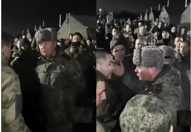 Gjeneral-major Kirill Kulakov, 53 vjeç, u përball me thirrjet “ik nga këtu”, “turp për ty” dhe “poshtë regjimi i Putinit”. Mijëra burra të mobilizuar iu bashkuan një proteste në bazën e tyre të stërvitjes në qytetin e Kazanit, në jugperëndim të Rusisë. Një natë më parë atyre iu tha se do të dërgoheshin në vijën e frontit.