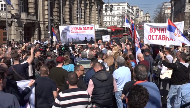 Disa mijëra njerëz më pas kanë shkuar në këmbë nga Kisha e Shën Savës deri në ndërtesën e Presidencës së Serbisë, me kërkesën që Vuçiq të refuzojë në Ohër planin evropian për normalizimin e marrëdhënieve me Kosovën, duke e quajtur këtë marrëveshje si “tradhti”.