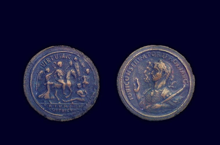 Pra medaljoni i dedikohet perandorit më origjinë ilire Mark Aurel Probit (Marcus Aurelius Probus), i lindur në afërsi të qytetit antik Sirmium , pas triumfit të parë ndaj gotëve në vitin 278, ku ishin vrarë mbi 5000 ushtarë të armikut. Medaljoni është shtypur në qytetin Siscia (Sisaku i sotëm) në Panoni po ne vitin 278 pas Krishtit.