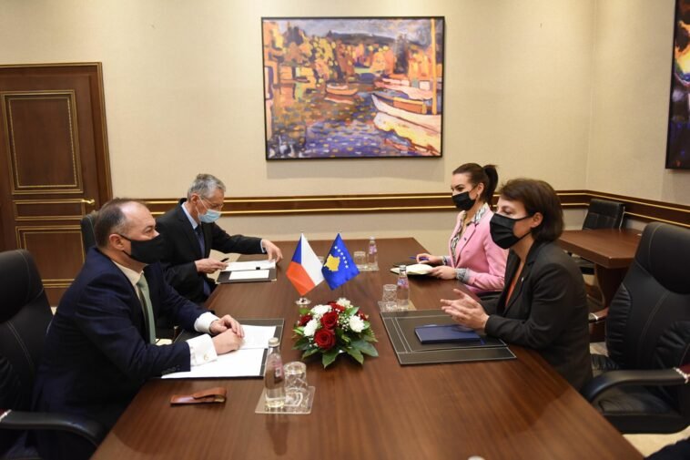 Ministrja e Punëve të Jashtme dhe Diasporës e Republikës së Kosovës, Donika Gërvalla, sot priti në takim ambasadorin çek në Kosovë, Pavel Bilek, nga i cili mori përgëzime për detyrën e re.Të dy palët vlerësuan marrëdhëniet midis dy shteteve, duke shfaqur gatishmërinë për avancimin e mëtejmë të tyre.Ministrja Gërvalla e njoftoi ambasadorin Bilek për përpjekjet e ekzekutivit kosovar në përballje me pandeminë.Zonja Gërvalla uroi që të dyja vendet ta kalojnë këtë periudhë me sa më pak pasoja në njerëz, duke pas parasyh faktin se edhe Kosova edhe Çekia po përballen me shifra të larta të të infektuarve me Covid-19.Ministrja e Jashtme theksoi se synim i qeverisë së re mbetet menaxhimi sa më i mirë i situatës me pandeminë dhe sigurimi sa më i shpejtë i sasisë së nevojshme të vaksinave për qytetarët e Kosovës.Në këtë takim është biseduar edhe për zhvillimet politike në vend dhe procesin e mbylljes së konstituimit të institucioneve të dala nga zgjedhjet e 14 shkurtit.Më tej, ministrja Gërvalla ka potencuar se shpreson në mbështetjen e Çekisë në procesin e librealizimit të vizave, sikurse edhe atë të integrimit evropian.Ndërkaq në fushën e bashkëpunimit bilateral, ministrja Gërvalla tha se pret që një bashkëpunim i tillë të shtrihet në fushën e ekonomisë, arsimit, kulturës dhe këmbimit tregtar.