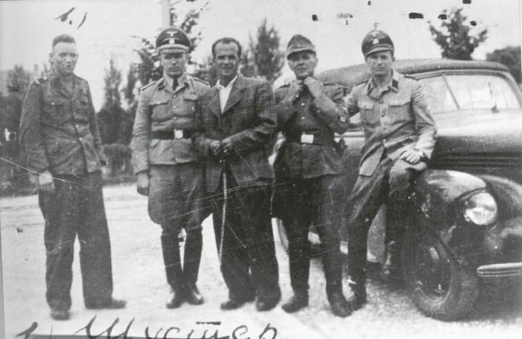 Drejtori i kampit famëkeq të Batajnicës: drejtori i kampit, Gjorgje Kosomajac në shoqëri me oficerë gjermanë.