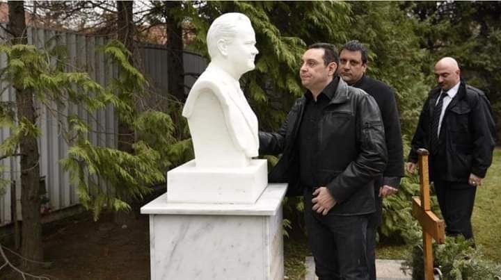 (Ministri i Mbrojtes në Serbi Vulin duke nderuar Millosheviçin)