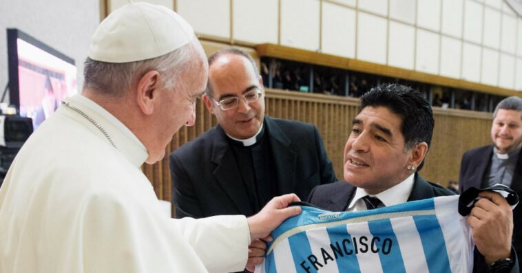 Maradona ishte poet futbolli, tha Papa Françesku me rastin e vdekjes së legjendës së futbollit dhe bashkwkombwsit argjentinas Diego Maradona.Maradona, i cili vdiq të mërkurën në shtëpinë e tij në Argjentinë nga efektet e një sulmi në zemër, u takua me papën disa herë në Vatikan, pasi Françesko u zgjodh papa i parë nga Amerika Latine në 2013.”Papa u informua për vdekjen e Diego Maradona, ai kujton me dashuri kohën kur e takoi në vitet e fundit dhe e kujton atë në lutjet e tij, si dhe ditët e kaluara kur u informua për gjendjen e tij”, tha zëdhënësi i Selisë së Shenjtë Matteo Bruni.Uebfaqja zyrtare e Vatican News publikoi një histori në faqen e saj të parë në lidhje me vdekjen e Maradonës. Maradona ishte “një lojtar i jashtëzakonshëm, por një njeri i brishtë”, duke iu referuar luftës së tij me drogën.Maradona ka udhëtuar në Romë disa herë për të marrë pjesë në takime bamirësie “Ndeshje për Paqen”, të ardhurat e së cilës shkuan për bamirësinë e Papës për arsimimin në vendet në zhvillim dhe për viktimat e tërmetit 2016 në Italinë qendrore.Në një rast, Maradona i dhuroi Papës një fanellë të nënshkruar me një dedikim që lexonte në Spanjisht: “Papa Françesku, me gjithë dashurinë dhe dëshirat e mia, shumë paqe në botë”.Papa Franjo është një tifoz i madh i klubit të futbollit San Lorenzo nga Buenos Aire