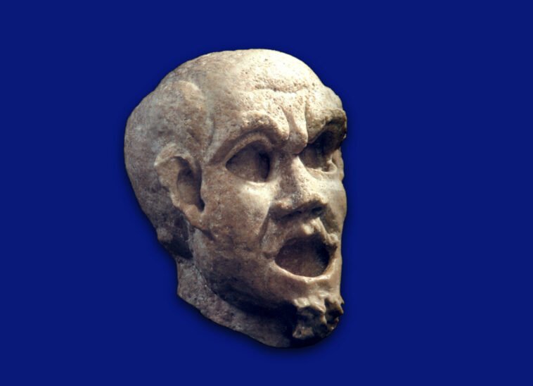 Tiparet e përshkruara të portretit janë karakteristikë e maskave antike tragjike të teatrit. Maskat tragjike dhe komike të teatrit, fillimisht u vunë në përdorim në Greqi në periudhën helenistike dhe u përhapen në Romë dhe në terë Perandorinë Romake në shekujt e parë pas Krishtit.
