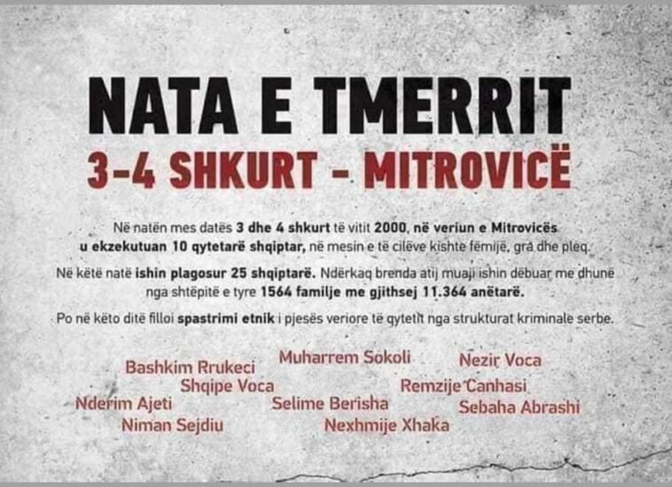 Mitrovica nuk do ta harrojë kurrë tmerrin e 3-4 shkurtit të vitit 2000, kur u vranë 10 qytetarë të saj, në mesin e të cilëve edhe pleq, gra e fëmijë.