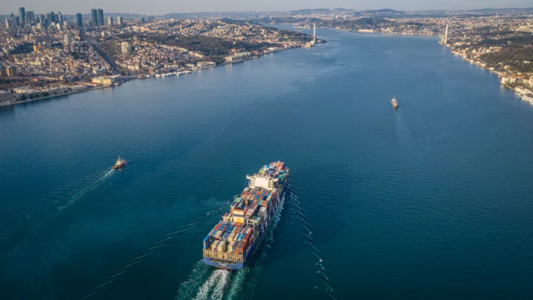 Një anije mallrash lundron përtej Bosforit. Një kanal i ri së shpejti do të përshkojë periferitë e Stambollit.