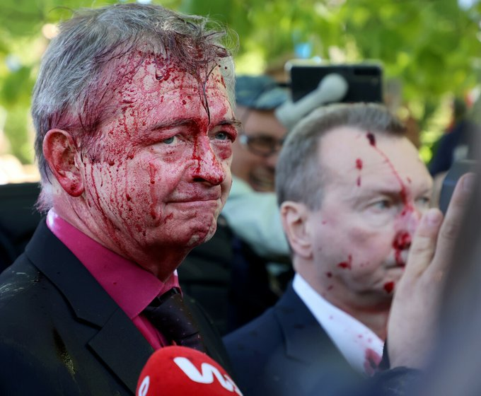 Protestuesit rreth tij kanë brohoritur “fashistët” teksa e hodhën ngjyrën në drejtim të ambasadorit.