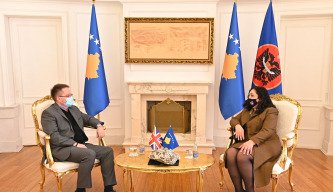 U.d. Presidentja Vjosa Osmani Sadriu priti sot në takim Ambasadorin e Mbretërisë së Bashkuar , z. Nicholas Abott. Në takim, Ambasadori Abott e uroi u.d. Presidenten Osmani për rezultatin e zgjedhjeve si dhe për mbarëvajtjen e procesit. Në takim u diskutua për rëndësinë e themelimit sa më të shpejtë të institucioneve në vend dhe përkushtimin e plotë drejt përmbushjes së pritshmerive dhe kërkesave të qytetarëve të Kosovës, që përfundimisht ndikojnë në përmirësimin e mirëqenies së tyre.